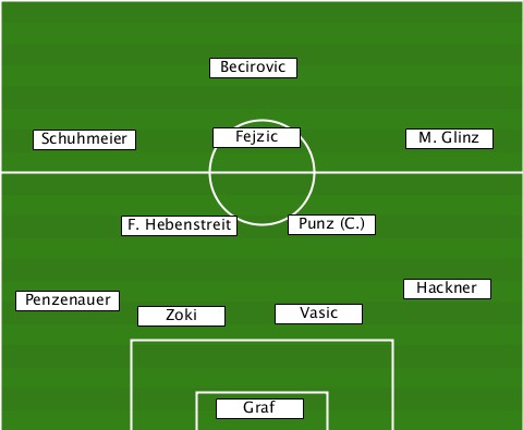 --------------Becirovic---------- ---Schuhmeier--Fejzic-------M. Glinz ---------F. Hebenstreit-Punz (C.)- --Penzenauer-Zoki---Vasic----Hackner ---------------Graf--------------