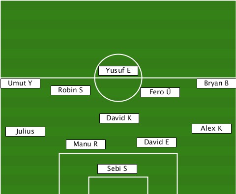 ---------------Yusuf E----------- --Umut Y-Robin S------Fero Ü---Bryan B ---------------David K----------- --Julius--------------------Alex K ----------Manu R-----David E------ ---------------Sebi S------------