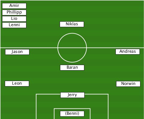 --Amir--------------------------- --Phillipp----------------------- --Lio---------------------------- --Lenni---------Niklas------------ ---Jason--------------------Andreas ---------------Baran------------- ---Leon---------------------Norwin ---------------Jerry------------- ---------------(Benni)-----------