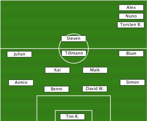 ---------------------------Alex-- ---------------------------Nuno-- ---------------------------Torsten R. ---------------Steven------------ ---Julian-------Tillmann-----Blum-- -----------Kai------Maik---------- ---Armin---------------------Simon -----------Benni----David W.------ ---------------Tim R.------------