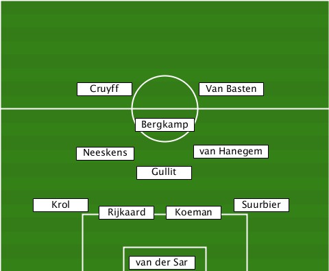 ---------Cruyff------------------ ---------------------Van Basten-- ---------------Bergkamp---------- ---------Neeskens----van Hanegem-- ---------------Gullit------------ -----Krol---Rijkaard-Koeman-Suurbier --------------van der Sar--------