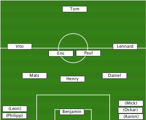 ---------------Tom--------------- ---Vito--------------------Lennard ------------Eric---Paul----------- ------Mats------Henry-----Daniel--- ---------------------------(Mick) --(Philipp)-(Leon)-Benjamin---(Oskar)-(Aaron)