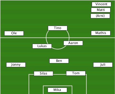 ---------------------------Vincent ---------------------------Matti- ---------------------------(Arni) ---------------Tino-------------- ---Ole----------------------Mathis ----------Lukas-----Aaron--------- ---------------Ben--------------- ---Jonny--------------------Juli-- -----------Silas-----Tom---------- ---------------Mika--------------