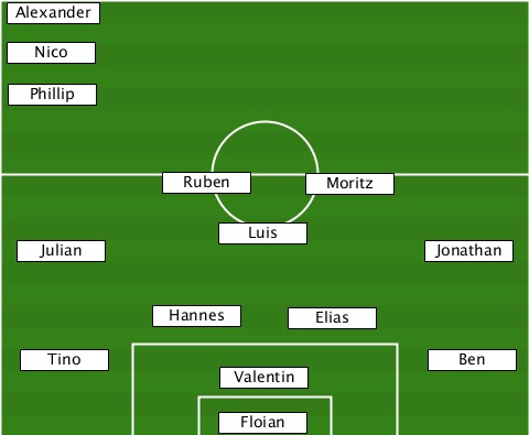 --Alexander---------------------- --Nico--------------------------- --Phillip------------------------ -----------Ruben-----Moritz------- ---------------Luis-------------- --Julian--------------------Jonathan -----------Hannes---Elias--------- ---Tino---------------------Ben--- ---------------Valentin---------- ---------------Floian------------