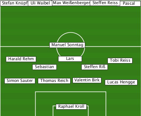 -------------Max Weißenberger---- -Stefan Knüpf-Uli Waibel-Steffen Reiss-Pascal -------------Manuel Sonntag------ ---Harald Rehm--Lars--------Tobi Reiss ---------Sebastian---Steffen Riß-- --Simon Sauter-Thomas Reich-Valentin Birk-Lucas Hengge --------------Raphael Kroll------