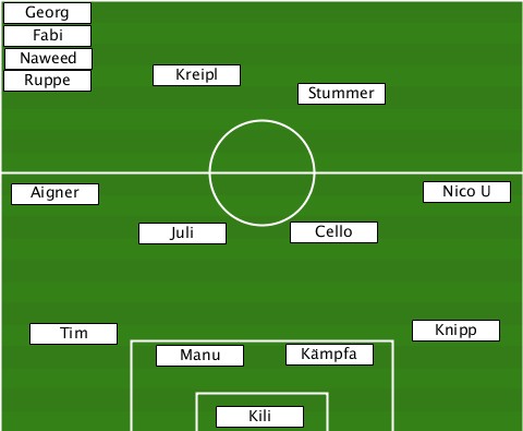 --Georg-------------------------- --Fabi--------------------------- --Naweed------------------------- --Ruppe-----Kreipl----Stummer------ --Aigner--------------------Nico U ----------Juli------Cello--------- ---Tim----------------------Knipp- -----------Manu-----Kämpfa-------- ---------------Kili--------------