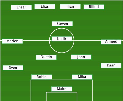 ----------Elias------------------ ----Ensar---------Ilian--Rilind---- ---------------Steven------------ --Marlon--------Kadir---------Ahmed -----------Dustin----John--------- --Sven-----------------------Kaan- ----------Robin------Mika--------- ---------------Malte-------------