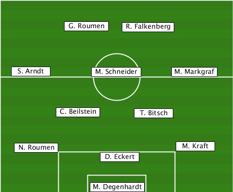 ----------G. Roumen-------------- ------------------R. Falkenberg-- ---S. Arndt----M. Schneider-M. Markgraf ---------C. Beilstein-T. Bitsch--- ---N. Roumen---------------M. Kraft ---------------D. Eckert--------- --------------M. Degenhardt------