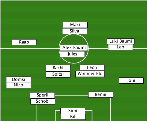 ---------------Maxi-------------- ---------------Silva------------- ----Raab------------------Luki Baumi ---------------Alex Baumi-Leo----- ---------------Jules------------- -----------Bachi----Leon---------- -----------Spitzi--Wimmer Flo----- ---Domsi--------------------Joni-- ---Nico-------------------------- --------Sperli--------Benni------- --------Schobi------------------- ---------------Simi-------------- ---------------Kili--------------