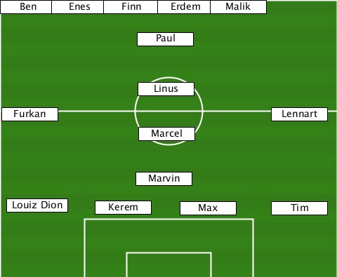 -Ben----------------------------- ------Enes--Finn--Erdem-Malik------- --------------Paul--------------- ---------------Linus------------- --Furkan--------------------Lennart ---------------Marcel------------ --------------Marvin------------- --Louiz Dion-Kerem---Max------Tim---