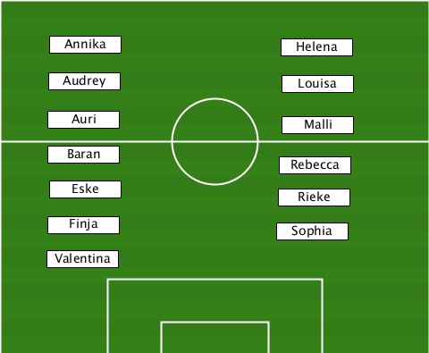 -----Annika---------------------- ----------------------Helena----- -----Audrey------------Louisa----- -----Auri--------------Malli------ -----Baran-------------Rebecca---- -----Eske--------------Rieke------ -----Finja-------------Sophia----- -----Valentina-------------------