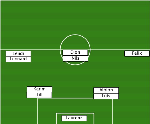 ---------------Dion-------------- ---Lendi---------------------Felix ---Leonard------Nils-------------- -------Karim----------Albion------ -------Till-----------Luis-------- ---------------Laurenz-----------