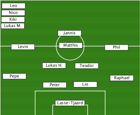 --Leo---------------------------- --Nico--------------------------- --Kiki--------------------------- --Lukas M.----------------------- ---------------Jannis------------ ----Levin-------Matthis----Phil---- -----------Lukas H.-Teodor-------- --Pepe----------------------Raphael -----------Peter---Lio------------ --------------Lasse-Tjaard-------