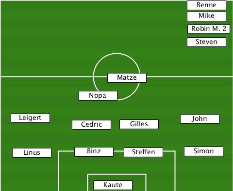 ---------------------------Benne- ---------------------------Mike-- ---------------------------Robin M. 2 ---------------------------Steven ----------------Matze------------ ------------Nopa----------------- ---Leigert--Cedric--Gilles---John--- ---Linus-----Binz---Steffen---Simon- --------------Kaute--------------