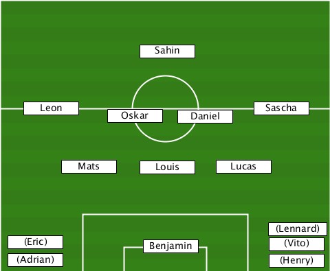 ---------------Sahin------------- ----Leon-----Oskar---Daniel--Sascha- -------Mats-----Louis---Lucas------ ---------------------------(Lennard) --(Eric)--------Benjamin------(Vito) --(Adrian)-------------------(Henry)