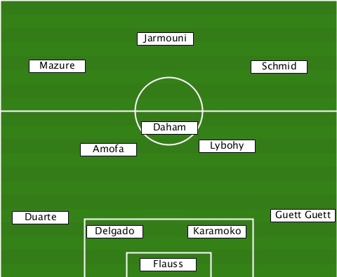 --------------Jarmouni----------- ----Mazure----------------Schmid-- ---------------Daham------------- ---------Amofa-------Lybohy------- ---Duarte-------------------Guett Guett ----------Delgado---Karamoko------ ---------------Flauss------------