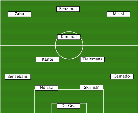 ---------------Benzema----------- ---Zaha--------------------Messi-- ---------------Kamada------------ ----------Kante------Tielemans---- ---Bensebaini---------------Semedo ----------Ndicka-----Skriniar----- ---------------De Gea------------