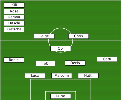 ---Kili-------------------------- ---Rose-------------------------- ---Ramon------------------------- ---Ditschi----------------------- --Kretsche----------------------- ----------Beige------Chris-------- ---------------Obi--------------- --Robin-----Tobi-----Denis----Gotti- --------Luca----Malcolm-Hattl------ ---------------Duras-------------
