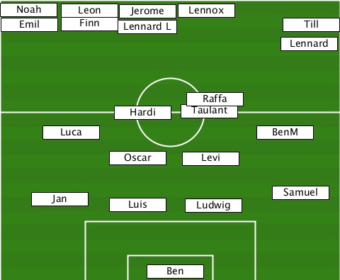 -Noah---------------------------- -------Leon---Jerome-Lennox-------- --Emil--Finn---Lennard L-------Till- ----------------------------Lennard -------------------Raffa--------- ------------Hardi--Taulant-------- -----Luca------------------BenM--- ------------Oscar---Levi---------- ----Jan------Luis----Ludwig---Samuel ---------------Ben---------------