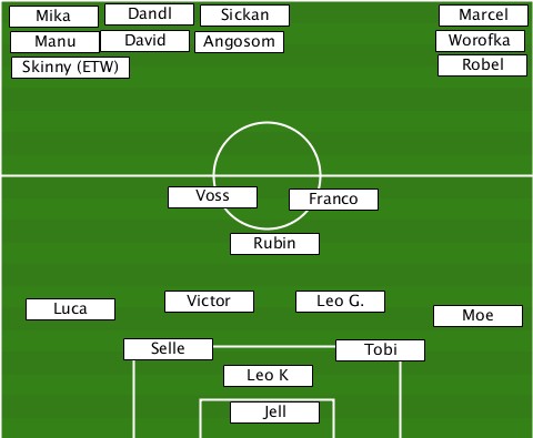 --------Dandl-------------------- --Mika--------Sickan----------Marcel --Manu--David--Angosom---------Worofka --Skinny (ETW)---------------Robel ------------Voss----Franco-------- ---------------Rubin------------- ---Luca-----Victor---Leo G.---Moe--- ---------Selle---------Tobi------- ---------------Leo K------------- ---------------Jell--------------