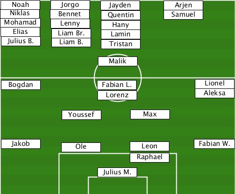 --Noah--------------------------- --------Jorgo---Jayden----Arjen---- -Niklas--Bennet--Quentin---Samuel--- -Mohamad-Elias-Julius B.-Lenny-Liam Br.-Liam B.-Hany-Lamin-Tristan ---------------Malik------------- --Bogdan--------Fabian L.-----Lionel ---------------Lorenz--------Aleksa ----------Youssef---Max----------- --Jakob----Ole-------Leon------Fabian W. -------------------Raphael------- ---------------Julius M.---------