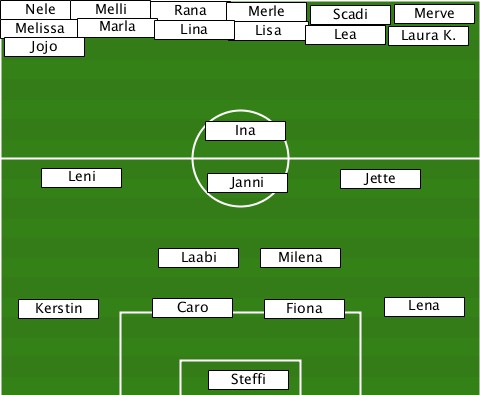 ------Melli---------------------- -Melissa-Nele-Jojo-Marla-Rana-Lina-Merle-Lisa-Lea-Scadi-Laura K.-Merve ---------------Ina--------------- ----Leni--------Janni-----Jette---- ------------Laabi---Milena-------- ---Kerstin---Caro----Fiona----Lena-- ---------------Steffi------------