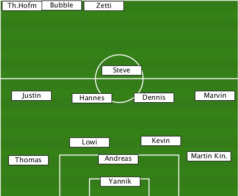 -------Bubble-------------------- --Th.Hofm-----Zetti--------------- ---------------Steve------------- ---Justin---Hannes---Dennis----Marvin -----------Lowi------Kevin-------- ---Thomas-------Andreas------Martin Kin. ---------------Yannik------------