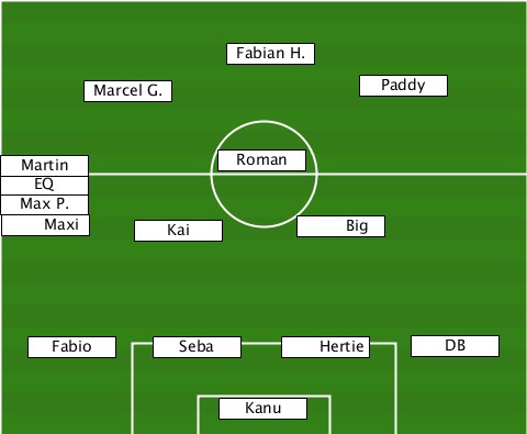 ---------------Fabian H.--------- -------Marcel G.--------Paddy----- -Martin---------Roman------------- -EQ------------------------------ -Max P.-------------------------- --Maxi-----Kai-------Big----------- ---Fabio----Seba-----Hertie--DB----- ---------------Kanu--------------