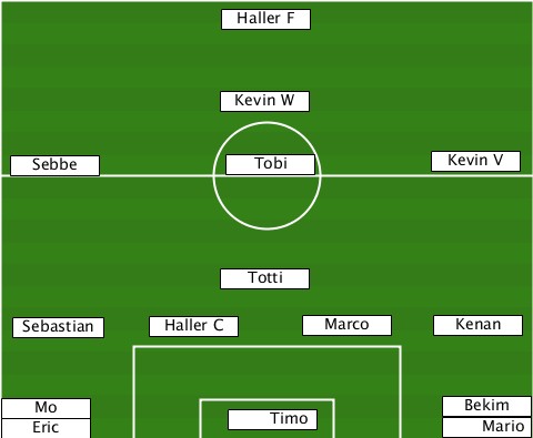 ---------------Haller F---------- ---------------Kevin W----------- --Sebbe---------Tobi---------Kevin V ---------------Totti------------- --Sebastian-Haller C--Marco---Kenan- --Mo-Eric--------Timo----------Bekim-Mario
