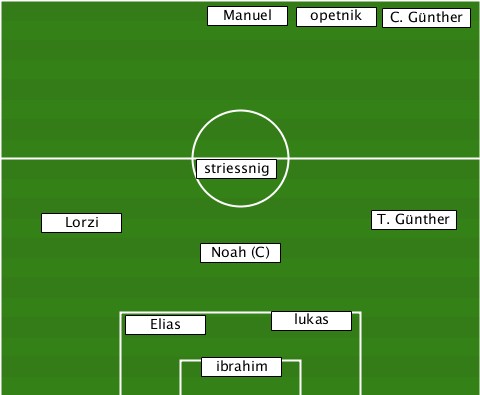 ---------------Manuel------------ ---------------------opetnik-C. Günther ---------------striessnig-------- ----Lorzi------------------T. Günther ---------------Noah (C)---------- ----------Elias------lukas-------- ---------------ibrahim-----------