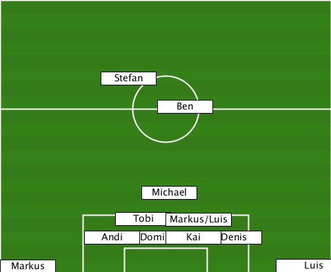 -----------Stefan---------------- -----------------Ben------------- ---------------Michael----------- -------------Tobi-Markus/Luis----- ----------Andi-Domi-Kai-Denis------- -Markus----------------------Luis-