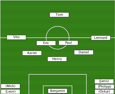 ---------------Tom--------------- ---Vito---------------------Lennard ------------Eric---Paul----------- --------Aaron----------Daniel----- ---------------Henry------------- ----------------------------(Janis) --(Mick)---------------------(Philipp) --(Leon)--------Benjamin------(Oskar)