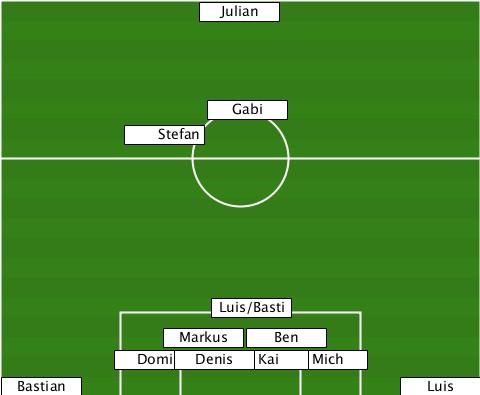 ---------------Julian------------ ---------------Gabi-------------- ----------Stefan----------------- ----------------Luis/Basti------- ------------Markus-Ben------------ ---------Domi-Denis-Kai-Mich-------- --Bastian--------------------Luis-