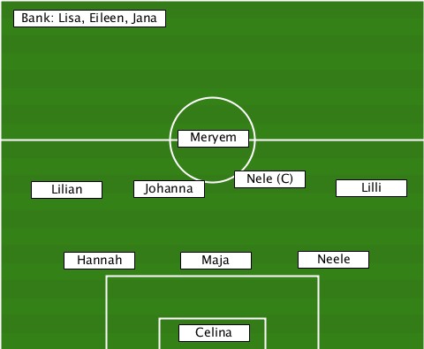 --Bank: Lisa, Eileen, Jana------- ---------------Meryem------------ ----Lilian---Johanna-Nele (C)-Lilli- ------Hannah----Maja------Neele---- ---------------Celina------------