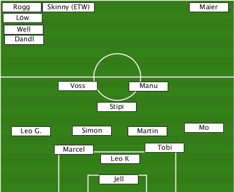 ---------------------------Maier- --Rogg--Skinny (ETW)-------------- --Löw---------------------------- --Well--------------------------- --Dandl-------------------------- ---------Voss-------Manu---------- ---------------Stipi------------- ---Leo G.---Simon----Martin---Mo---- ---------Marcel-------Tobi-------- ---------------Leo K------------- ---------------Jell--------------