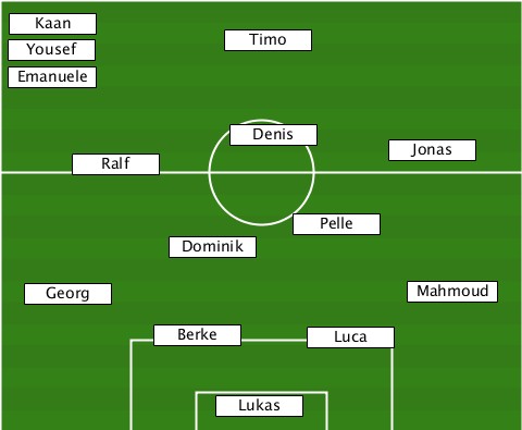 --Kaan--------------------------- --Yousef--------Timo-------------- --Emanuele----------------------- ------Ralf-------Denis-----Jonas--- -------------------Pelle--------- ------------Dominik-------------- ---Georg-------------------Mahmoud -----------Berke-----Luca--------- ---------------Lukas-------------