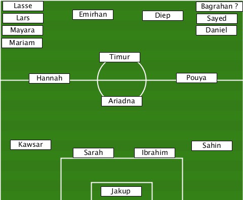--Lasse-------------------------- ---------------------------Bagrahan ? --Lars------Emirhan---Diep----Sayed- --Mayara--------------------Daniel --Mariam------------------------- ---------------Timur------------- -----Hannah---------------Pouya--- ---------------Ariadna----------- ---Kawsar---Sarah----Ibrahim--Sahin- ---------------Jakup-------------