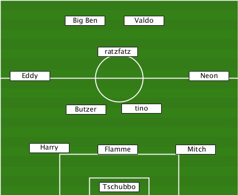 ----------Big Ben---------------- ------------------Valdo---------- ---------------Ratzfatz---------- ---Eddy---------------------Neon-- ----------Butzer---Tino----------- -----Harry------Flamme-----Mitch--- ---------------Tschubbo----------