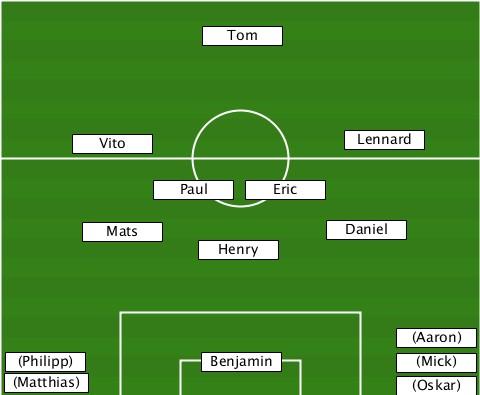 ---------------Tom--------------- ------Vito---------------Lennard-- ------------Paul---Eric----------- -------Mats-------------Daniel---- ---------------Henry------------- ----------------------------(Aaron) --(Philipp)-----Benjamin------(Mick) --(Matthias)-----------------(Oskar)