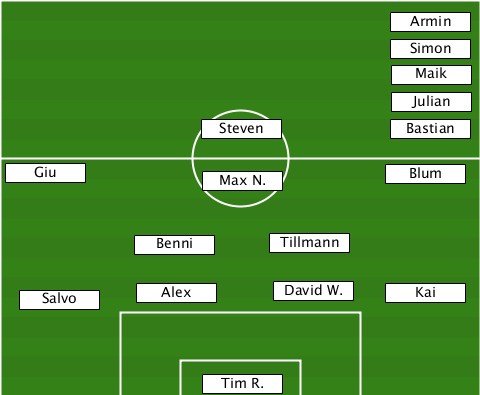 ---------------------------Armin- ---------------------------Simon- ----------------------------Maik- ----------------------------Julian ---------------Steven-------Bastian --Giu-----------Max N.-------Blum-- ----------Benni-----Tillmann------ ---Salvo----Alex------David W.-Kai-- ---------------Tim R.------------