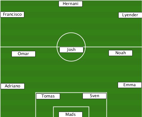 ---------------Hernani----------- --Francisco------------------Lyender ----Omar--------Josh--------Noah--- --Adriano--------------------Emma- ----------Tomas------Sven--------- ---------------Mads--------------