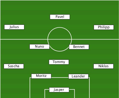 ---------------Pavel------------- ---Julius-------------------Philipp ---------Nuno--------Bennet------- ---------------Tommy------------- --Sascha--------------------Niklas ----------Moritz-----Leander------ ---------------Jasper------------