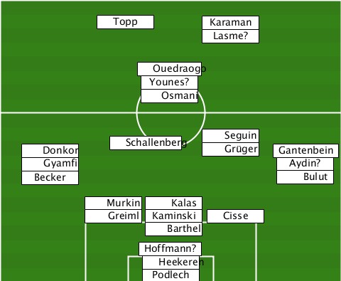 -----------Topp------------------ --------------------Karaman------ --------------------Lasme?------- --------------Ouedraogo---------- ---------------Younes?----------- ---------------Osmani------------ ---Donkor----Schallenberg-Seguin-Grüger-Gantenbein ---Gyamfi-------------------Aydin? ---Becker-------------------Bulut- ---------Murkin-Kalas------------- ---------Greiml-Kaminski-Cisse----- ---------------Barthel----------- --------------Hoffmann?---------- ---------------Heekeren---------- ---------------Podlech-----------