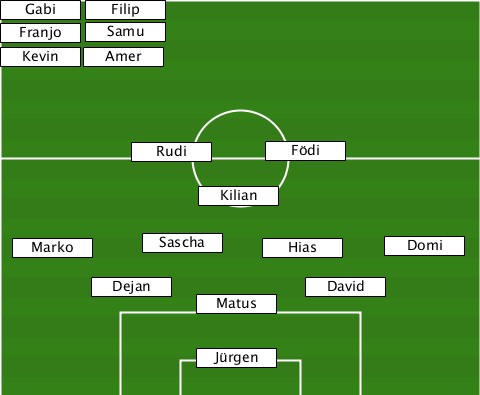 -------Filip--------------------- -Gabi---------------------------- -Franjo-Samu---------------------- -Kevin--Amer---------------------- ----------Rudi------Födi---------- ---------------Kilian------------ --Marko-----Sascha---Hias-----Domi-- --------Dejan----------David------ ---------------Matus------------- ---------------Jürgen------------