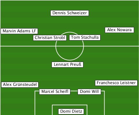 -------------Dennis Schweizer---- --Marvin Adams LF----------Alex Nowara ---------Christian Strobl-Tom Stachulla -------------Lennart Preuß------- --Alex Grünsteudel------Franchesco Leistner ----------Marcel Scheifl-Domi Will ---------------Domi Dietz--------