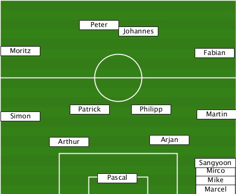 ------------Peter---------------- ------------------Johannes------- --Moritz---------------------Fabian --Simon-----Patrick--Philipp---Martin --------Arthur---------Arjan------ ----------------------------Sangyoon ---------------Pascal--------Mirco-Mike ----------------------------Marcel