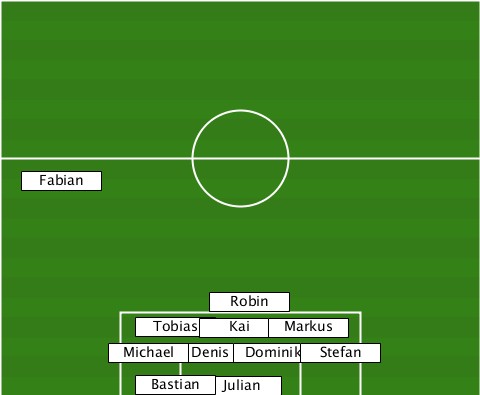 ---Fabian------------------------ ---------------Robin------------- ----------Tobias-Kai-Markus-------- ---------Michael-Denis-Dominik-Stefan ----------Bastian-Julian----------