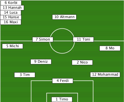 --6 Korbi------------------------ --13 Hannah---------------------- --14 Luca------------------------ -15 Hanse-------10 Altmann-------- --16 Maxi------------------------ ----------7 Simon----11 Toni------ --5 Michi-------------------8 Mo-- ---------9 Deniz-----2 Nico------- -----3 Tim----------------12 Mohammad ---------------4 Ferdi----------- ---------------1 Timo------------