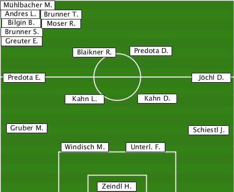 -Mühlbacher M.------------------- --Andres L.-Brunner T.------------ --Bilgin B.-Moser R.-------------- --Brunner S.--------------------- --Greuter E.--------------------- -----------Blaikner R.-Predota D.- --Predota E.-----------------Jöchl D. ----------Kahn L.----Kahn D.------ --Gruber M.-----------------Schiestl J. ----------Windisch M.-Unterl. F.-- ---------------Zeindl H.---------
