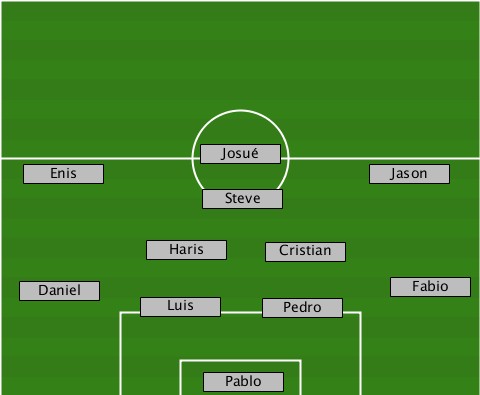 ---------------Josué------------- ---Enis--------------------Jason-- ---------------Steve------------- -----------Haris----Cristian------ ---Daniel-------------------Fabio- -----------Luis-----Pedro--------- ---------------Pablo-------------